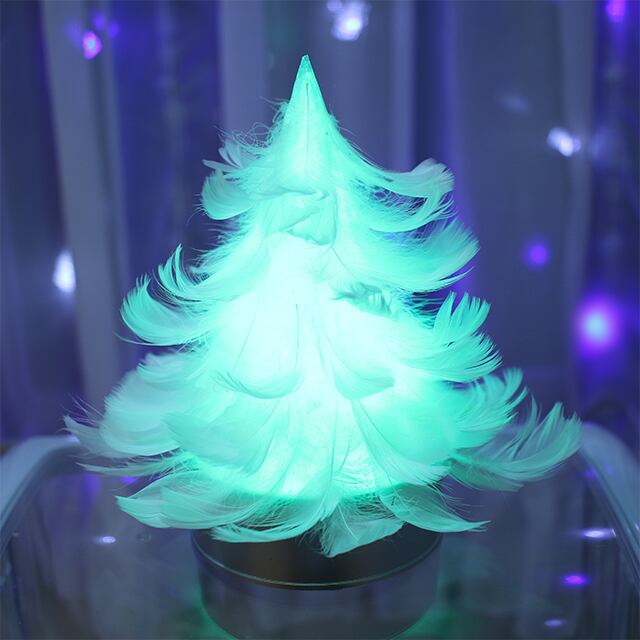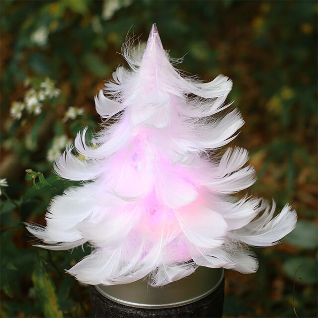 【7色に光る羽ツリー】てのひらサイズ LEDライト付き完成品 feather tree light 003